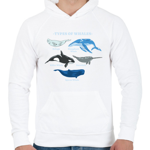 1 kép PRINTFASHION Bálna fajták - Férfi kapucnis pulóver - Fehér