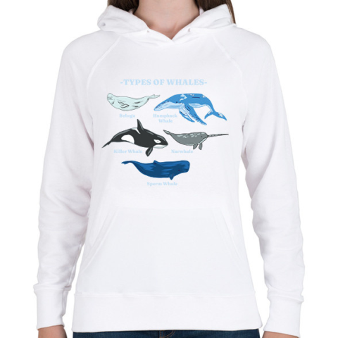 1 kép PRINTFASHION Bálna fajták - Női kapucnis pulóver - Fehér