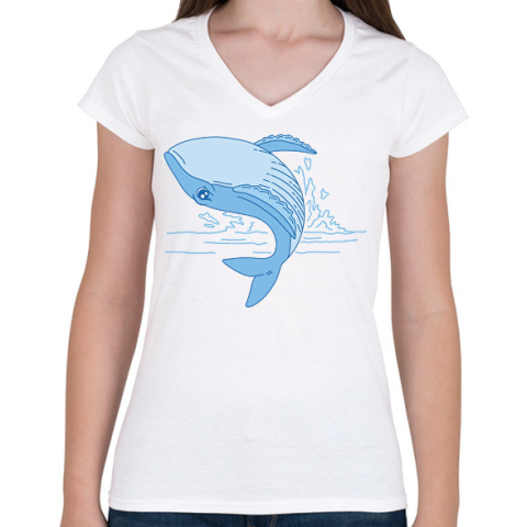 1 kép PRINTFASHION Bálna - Női V-nyakú póló - Fehér