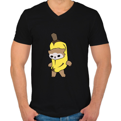 1 kép PRINTFASHION Banán cica mém - Férfi V-nyakú póló - Fekete
