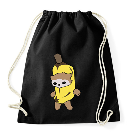 1 kép PRINTFASHION Banán cica mém - Sportzsák, Tornazsák - Fekete