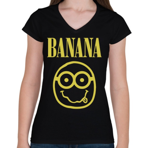 1 kép PRINTFASHION Banana - Női V-nyakú póló - Fekete