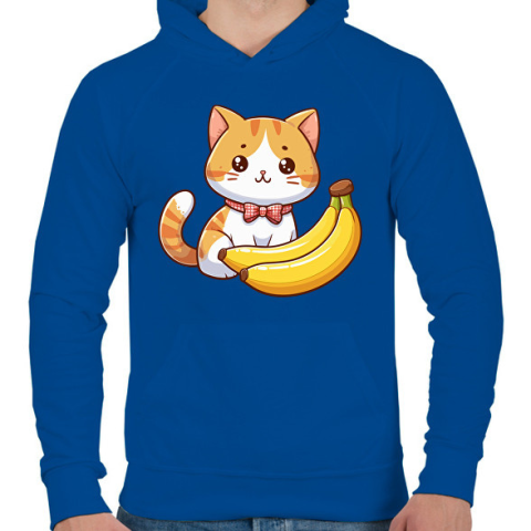 1 kép PRINTFASHION Banános cica - Férfi kapucnis pulóver - Királykék