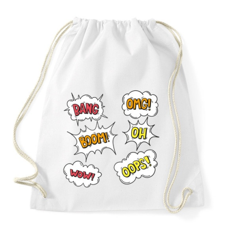 1 kép PRINTFASHION bang boom omg oops - Sportzsák, Tornazsák - Fehér
