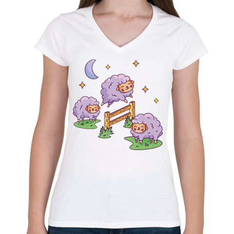 1 kép PRINTFASHION Bárányok - Női V-nyakú póló - Fehér