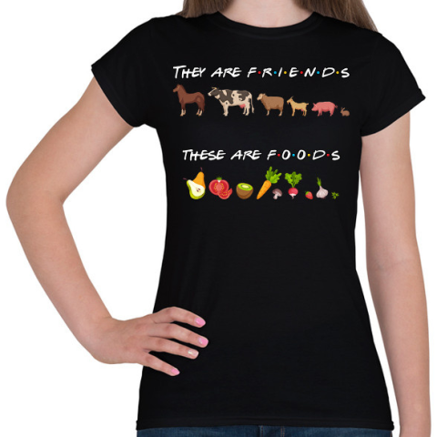 1 kép PRINTFASHION Barátok és ételek - Női póló - Fekete