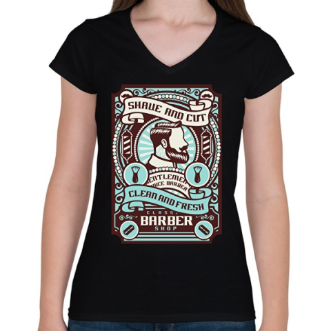 1 kép PRINTFASHION Barber shop - Női V-nyakú póló - Fekete