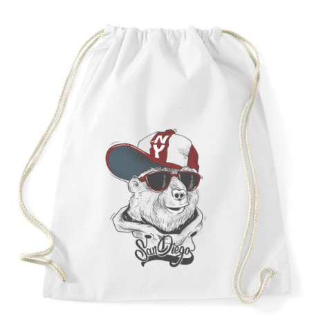 1 kép PRINTFASHION Baseball sapkás medve - Sportzsák, Tornazsák - Fehér