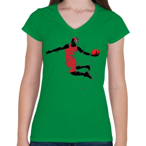 1 kép PRINTFASHION Basketball girls - Női V-nyakú póló - Zöld