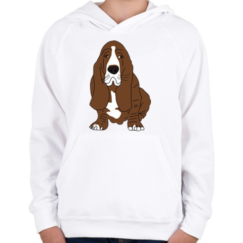 1 kép PRINTFASHION Basset hound - Gyerek kapucnis pulóver - Fehér
