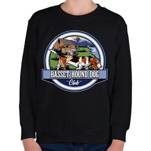 1 kép PRINTFASHION Basset hound kutya club - Gyerek pulóver - Fekete