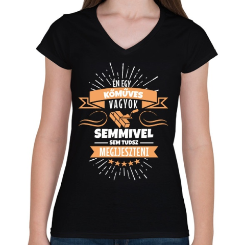 1 kép PRINTFASHION Bátor kőműves - Női V-nyakú póló - Fekete