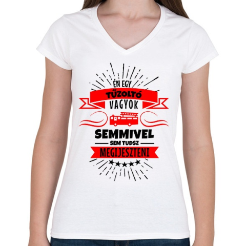 1 kép PRINTFASHION Bátor tűzoltó - Női V-nyakú póló - Fehér