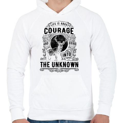 1 kép PRINTFASHION Bátorság - Férfi kapucnis pulóver - Fehér