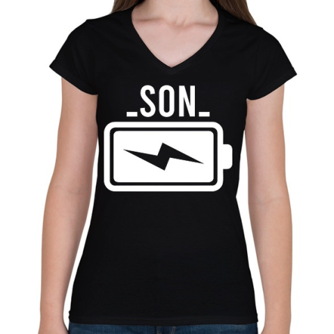 1 kép PRINTFASHION Battery - son - Női V-nyakú póló - Fekete