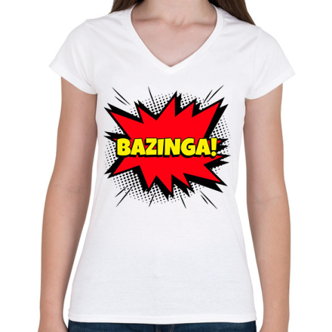 1 kép PRINTFASHION BAZINGA - Női V-nyakú póló - Fehér