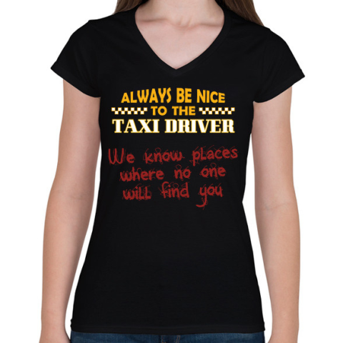 1 kép PRINTFASHION Be nice to the taxi driver - Női V-nyakú póló - Fekete