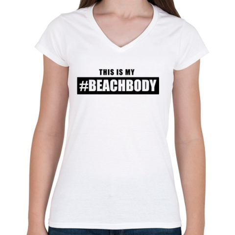 1 kép PRINTFASHION #BEACHBODY - Női V-nyakú póló - Fehér