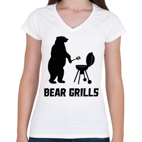 1 kép PRINTFASHION Bear Grills - Női V-nyakú póló - Fehér