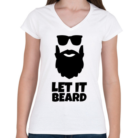 1 kép PRINTFASHION BEARD - Női V-nyakú póló - Fehér