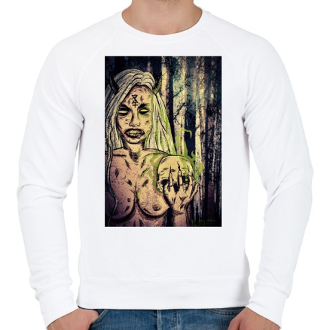 1 kép PRINTFASHION Beast Design Witch Bitch - Férfi pulóver - Fehér