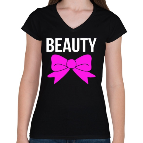 1 kép PRINTFASHION BEAUTY - Női V-nyakú póló - Fekete