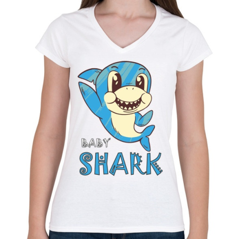 1 kép PRINTFASHION Bébi cápa - baby shark - Női V-nyakú póló - Fehér