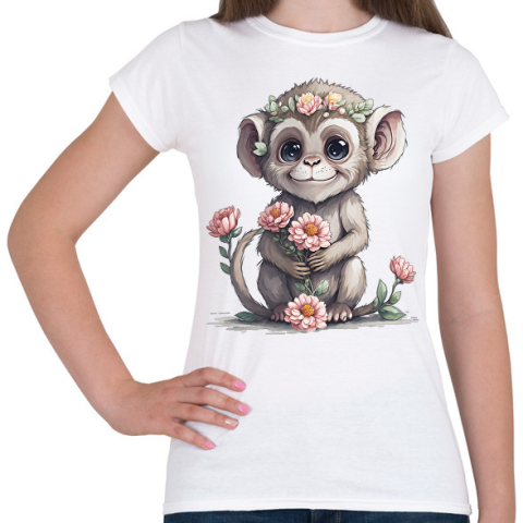 1 kép PRINTFASHION Bébi majom virágokkal - Női póló - Fehér