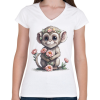1 kép PRINTFASHION Bébi majom virágokkal - Női V-nyakú póló - Fehér