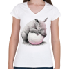 1 kép PRINTFASHION Bébi orrszarvú egy pink labdával - Női V-nyakú póló - Fehér