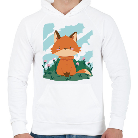 1 kép PRINTFASHION Bébi róka - Férfi kapucnis pulóver - Fehér