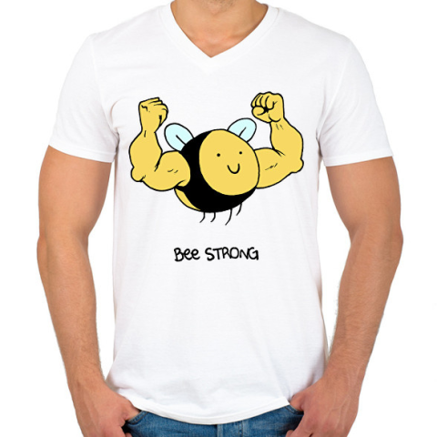1 kép PRINTFASHION Bee strong - Férfi V-nyakú póló - Fehér