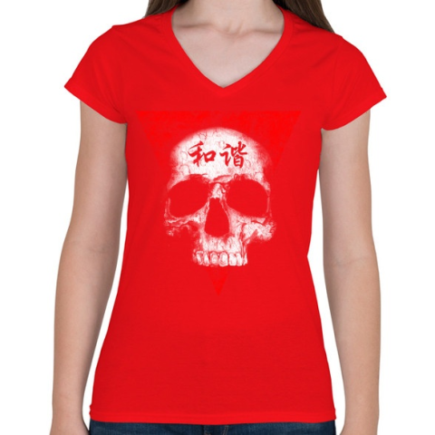 1 kép PRINTFASHION Békés koponya - Női V-nyakú póló - Piros