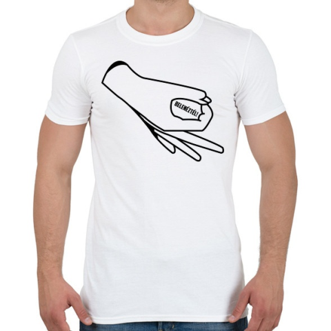 1 kép PRINTFASHION Belenéztél! - Férfi póló - Fehér