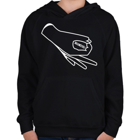1 kép PRINTFASHION Belenéztél! - Gyerek kapucnis pulóver - Fekete