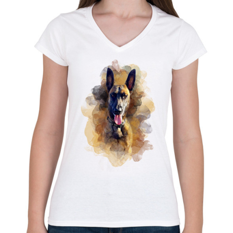 1 kép PRINTFASHION Belga juhász kutya - Női V-nyakú póló - Fehér