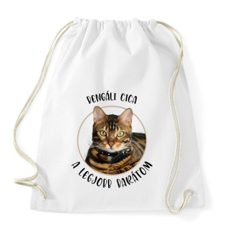 1 kép PRINTFASHION Bengáli cica - Legjobb barát - Sportzsák, Tornazsák - Fehér