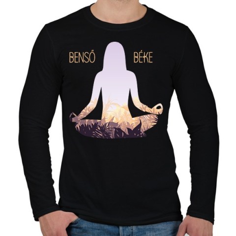 1 kép PRINTFASHION Benső béke - Meditáló nő - Férfi hosszú ujjú póló - Fekete