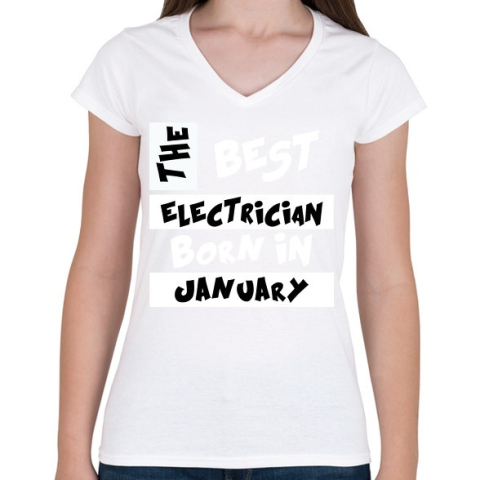 1 kép PRINTFASHION Best Electrician Born in January - Női V-nyakú póló - Fehér