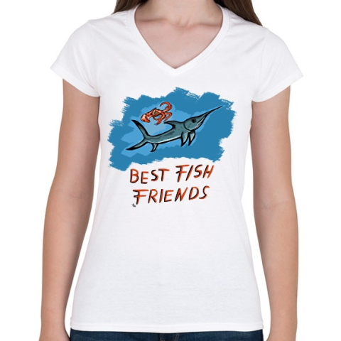 1 kép PRINTFASHION best fish friends - Női V-nyakú póló - Fehér