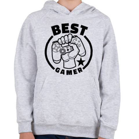 1 kép PRINTFASHION Best gamer - Gyerek kapucnis pulóver - Sport szürke
