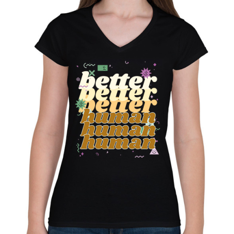 1 kép PRINTFASHION better human - Női V-nyakú póló - Fekete