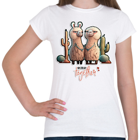 1 kép PRINTFASHION BETTER together - I Love You - szerelmes lámás minta - Női póló - Fehér