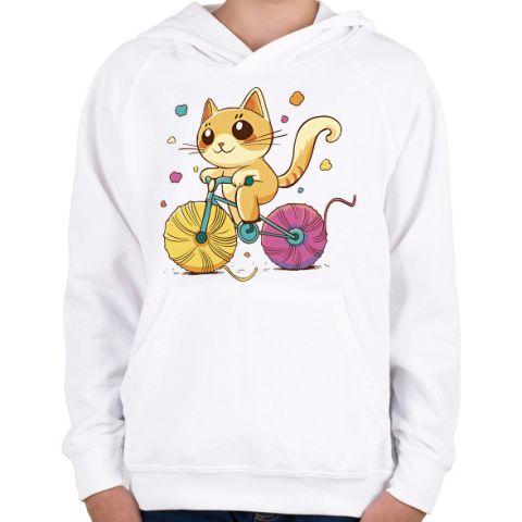 1 kép PRINTFASHION Biciklis cica - Gyerek kapucnis pulóver - Fehér