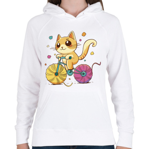 1 kép PRINTFASHION Biciklis cica - Női kapucnis pulóver - Fehér
