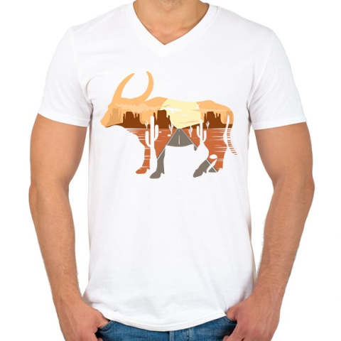 1 kép PRINTFASHION Bika - Férfi V-nyakú póló - Fehér