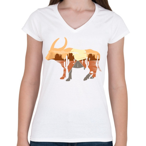 1 kép PRINTFASHION Bika - Női V-nyakú póló - Fehér