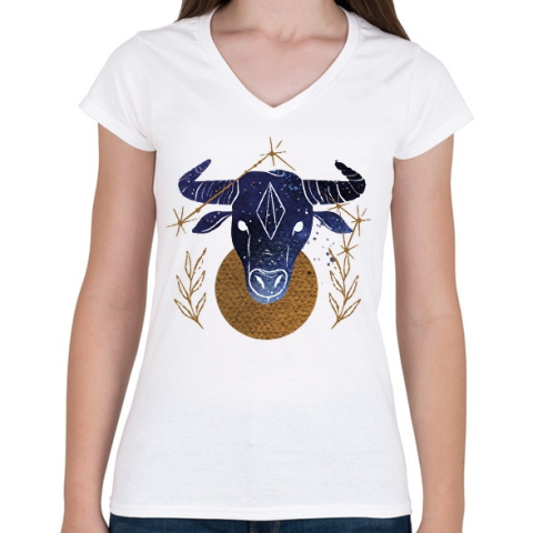 1 kép PRINTFASHION Bika - Női V-nyakú póló - Fehér