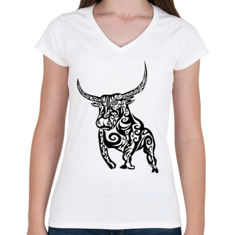 1 kép PRINTFASHION Bika - Női V-nyakú póló - Fehér