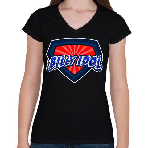 1 kép PRINTFASHION BILLY IDOL - Női V-nyakú póló - Fekete